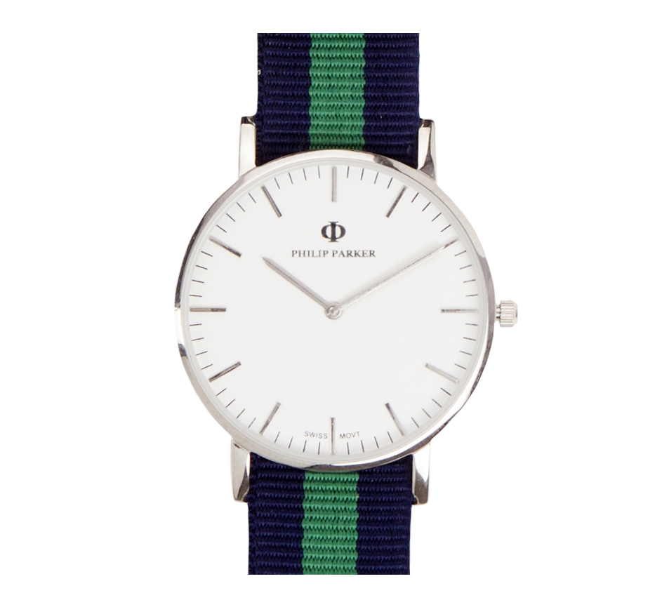 The Parker Navy Baltimore Watch is designed for those who embrace adventure and style. Featuring a durable NATO strap in a striking blue-green-blue pattern, it offers both comfort and character. Powered by a Swiss precision mechanism, this timepiece guarantees exceptional accuracy and reliability. Perfect for casual wear or outdoor activities, the Navy Baltimore combines rugged functionality with timeless design. Philip Parker Watches Navy Collection is equipped with NATO strap which is extra durable and can be used in tough conditions. Watches from Navy Collection look classy and elegant on the wrist of both ladies and gentlemen.
